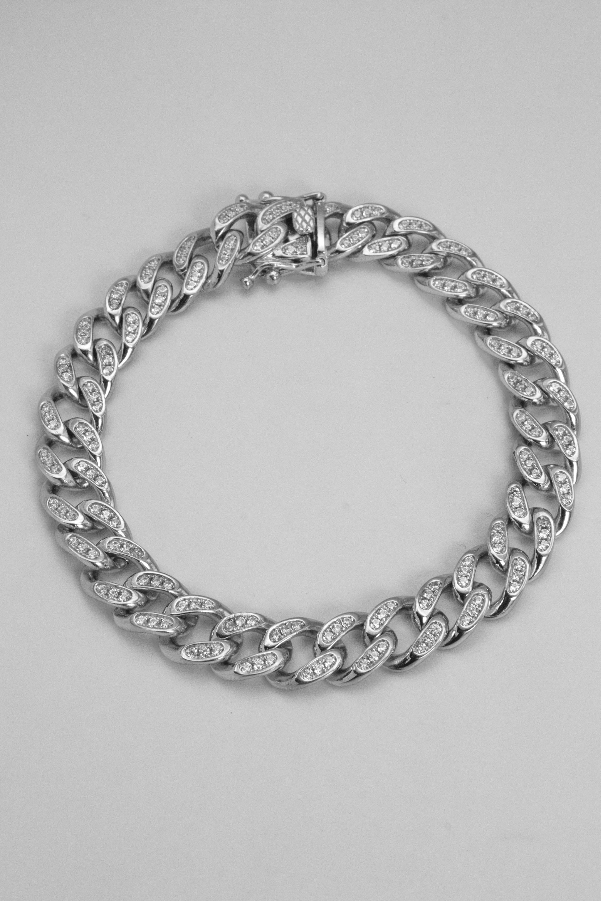 Iced Miami Cuban Link Bracelet in Rhodium Plated 925 Sterling Silver.